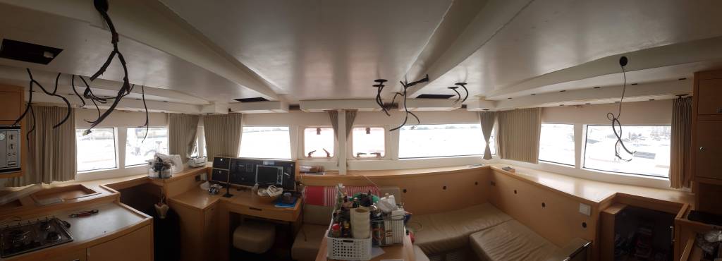 We share with you some photo of this first step, as it is not often that the ceiling of a Lagoon 450 is taken down.