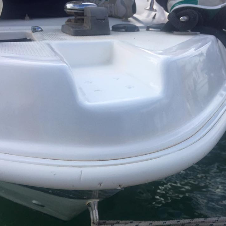 This was a quick project we did for an owner with a big gelcoat problem at the bow of his boat. When the repair is so large, it requires quite some time as we have to let is dry many time before we are in a position to start the polishing.