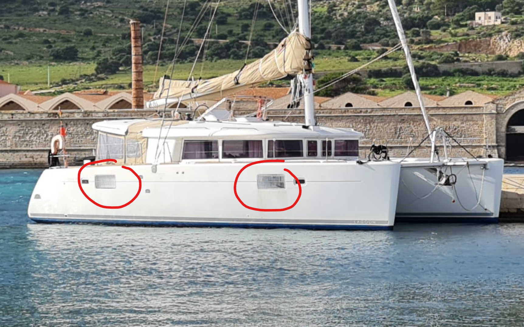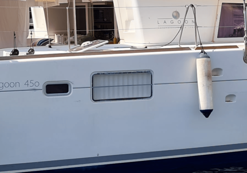 On the early years of the range, Lagoon fitted their catamaran with an external privacy and sun white cover. While contributing to the sleek look of the hulls, it would usually deteriorate over time, with fender abrasion, no matter how carful their owner would be in placing them. More recent units would have their protection set on the inside side of the window, putting the usual sources of wear & tear out of the mix.