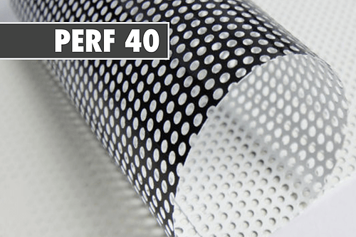 We came up with “Pellicola decorativa PVC microforato 40%“, a product made by italian firm MC SERRAMENTI SRL (Milano), witch fitted all our requirements for a total cost of only 150€ (1,52 x 2,5 m).
