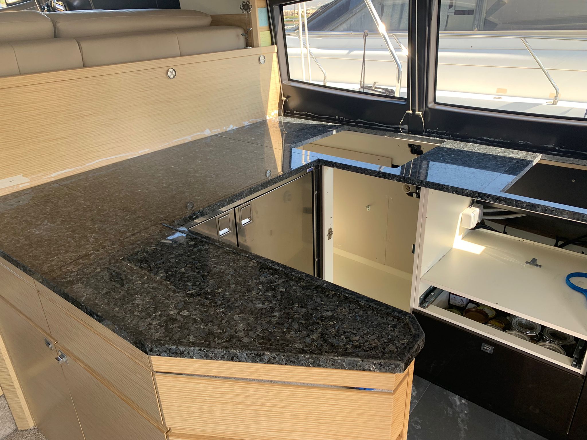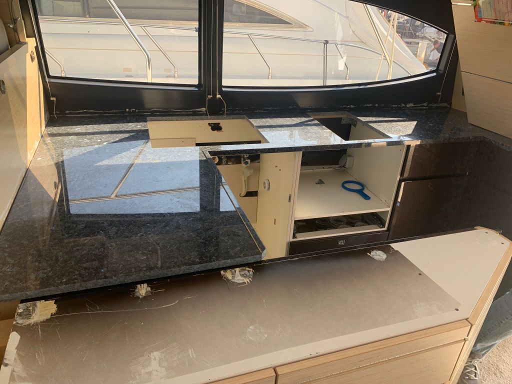 Last February, the German owners of m/v Jua, an 18,8m power boat, asked us to make numerous improvements and hull work, including a complete refit of their galley, furniture, topside and appliances. Of course, being a power boat, they didn’t have the usual constrains we have to cope with on our sailing boat clients.