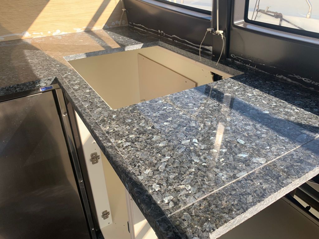 The result is a game-changer in the galley. It feels both very solid, to sustain any cooking exercice, and homey at the same time, which is unusual on many boat galley.
