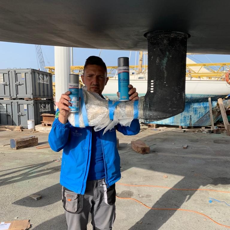 After this, it was time to go for the propeller and Sail Drive protection. Under our advice, the owners decided to use Trilux Prop-O-Drev for the protection of the Sail Drive, and our PropSpeed Primer and Coat special treatment for the propeller.