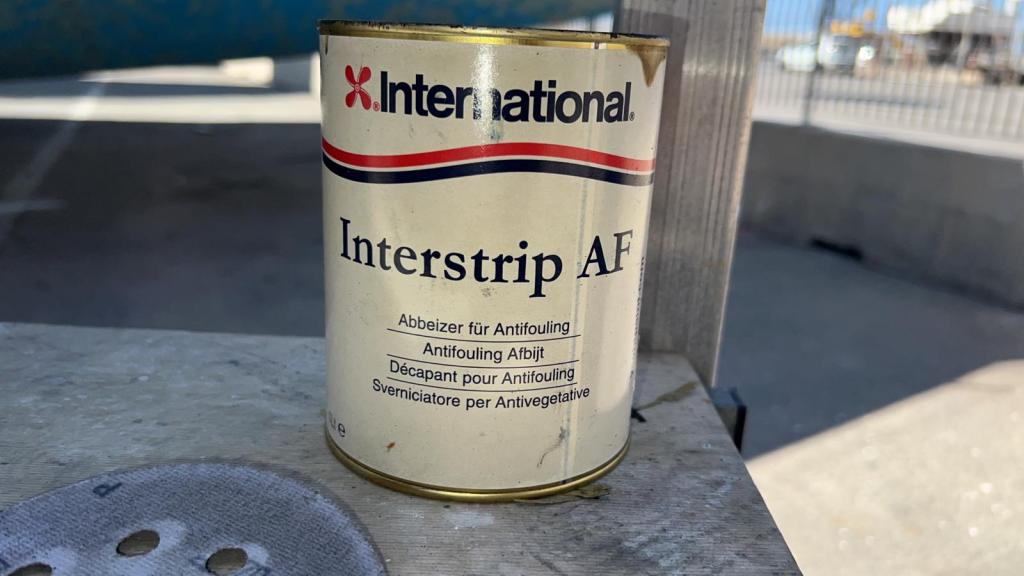 To take away the old Antifouling layers, we used Interstrip AF, a product specifically designed for this purpose.