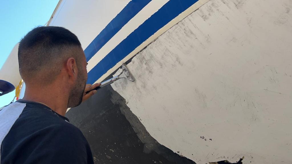 It implied lots of scraping, polishing, and new paint, But first the owner asked us to remove the old antifouling layers, always a delicate work if you don’t want to damage the gelcoat beneath.