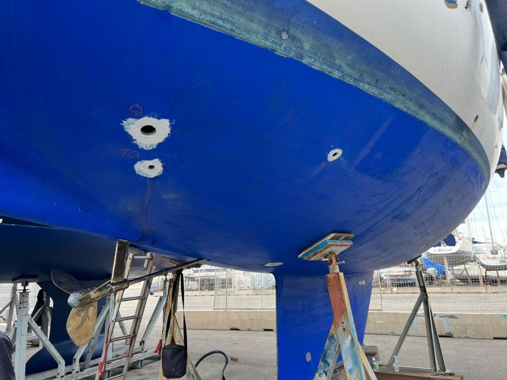 Sam, happy owner of s/v Odyssée, one of the 106 Corsair 36 units built by Westerly between 1983 and 1986, came to us for a complete refit of her original seacocks and some general hull work.